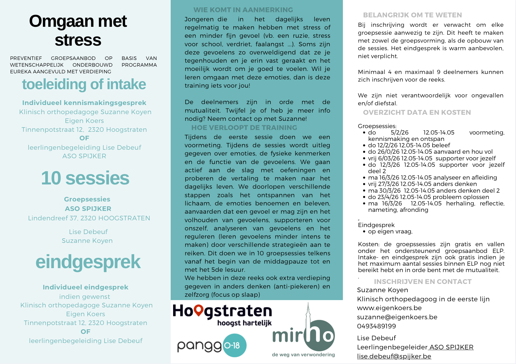 Training omgaan met stress op basis van Eureka protocol - in samenwerking met ASO Spijker